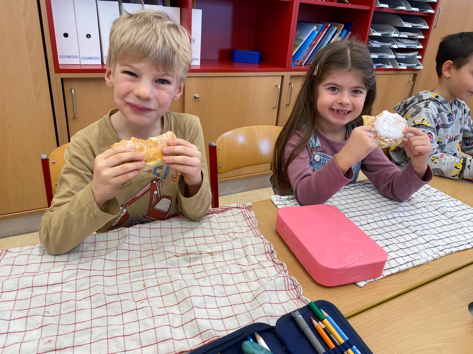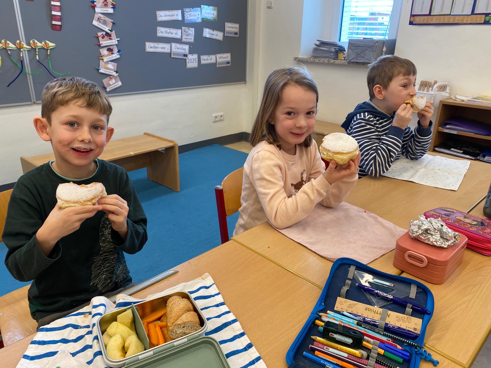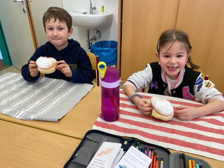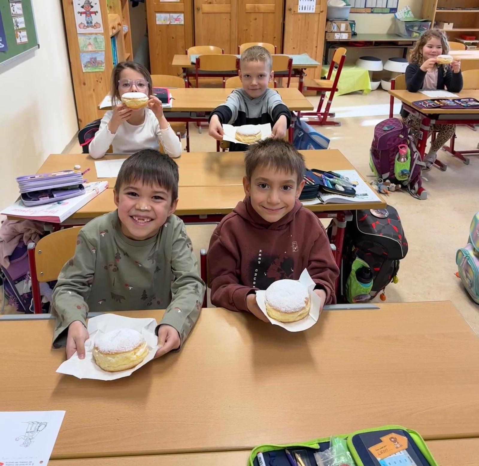 Die Kinder und Lehrerinnen der Volksschule Lengau danken der Gemeinde herzlich für den leckeren Faschingskrapfen!